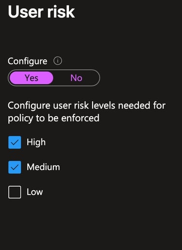 E impostiamo che livello di rischio deve avere l'utente perchè venga applicata la nostra policy - nel mio caso metterò Medium e High