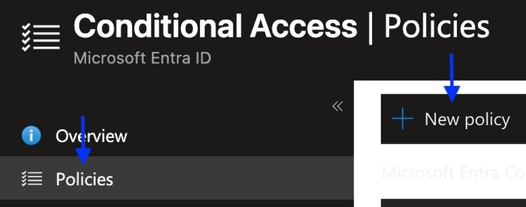 Dal portale di Entra ID andiamo su Conditional Access - Policy - New Policy
