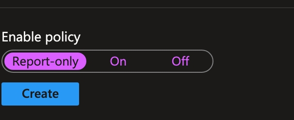 A questo punto non resta che abilitare la policy in modalità Report-only, monitorarne il comportamento ed effettuare i test necessari; una volta verificato il corretto funzionamento, sarà possibile attivarla definitivamente in modalità On.
